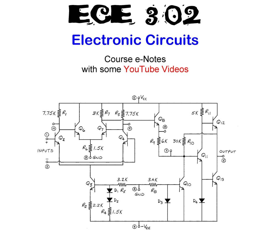 ECE 302: Electronic Circuits is 3-credit course taught at Michigan State University for Electrical and Computer Engineering majors. The catalog description for this course is: Volt-ampere characteristics of diodes and transistors. Modeling using SPICE software. Differential, multistage, and integrated circuit amplifiers. High frequency effects. The prerequisite for this course is ECE 202. There is a co-requisite of the companion lab course ECE 303.